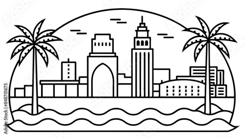 Obraz premium City skyline artwork showcasing tall buildings and a bustling city scene. City skyline with a variety of buildings and a lively urban vibe.