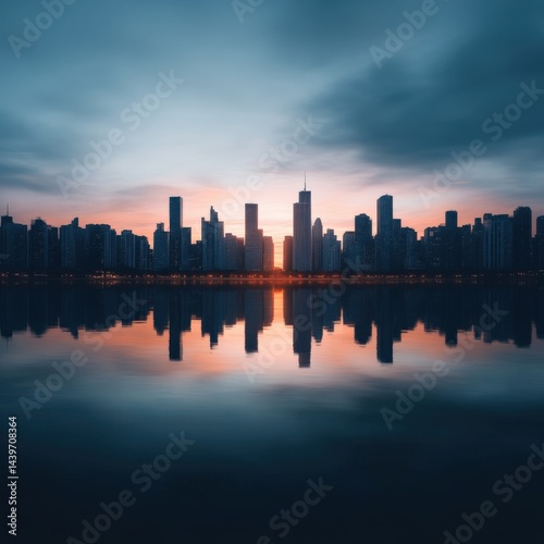 © Priya, Fototapeta premium City skyline at dawn reflection