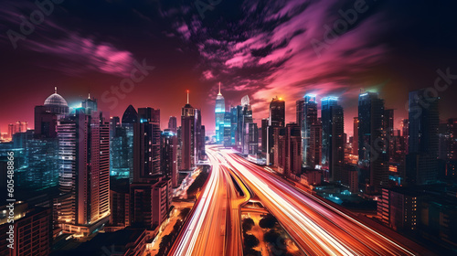 Fototapeta premium City skyline at dusk, Generative AI