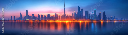 © osagvsa, Obraz premium City skyline at dusk glows with an ethereal beauty, inspiring sense of wonder