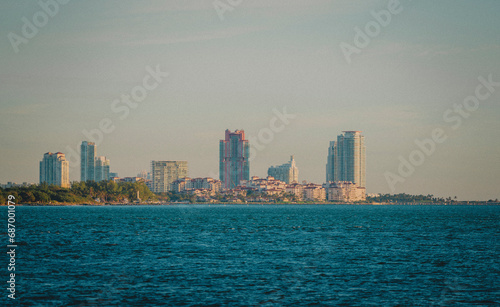© Cavan, Fototapeta premium city skyline at dusk Miami Beach