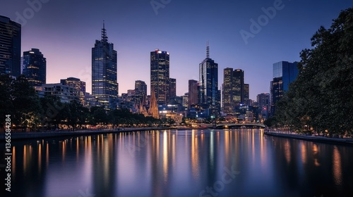 © Lilly, Fototapeta premium City skyline at dusk viewed from across the river