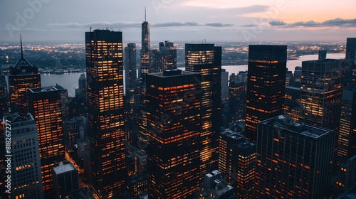 © BotTastic, Obraz premium City skyline at dusk with lights