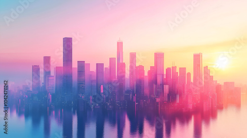 Fototapeta premium city skyline at dusk, with tall buildings and skyscrapers