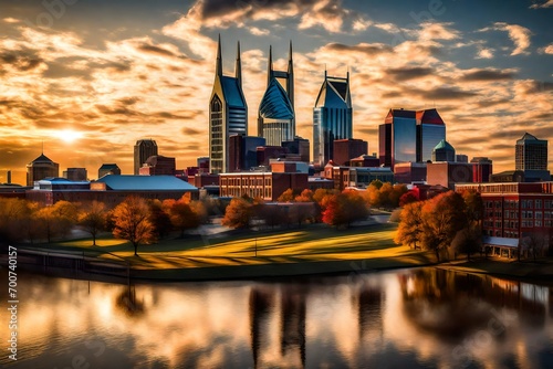 © hassan, Obraz premium city skyline at night