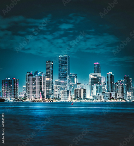 Naklejka premium city skyline at night beautiful new miami Florida Brickell area