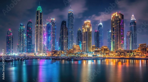 © Olga, Fototapeta premium City skyline at night from waterfront
