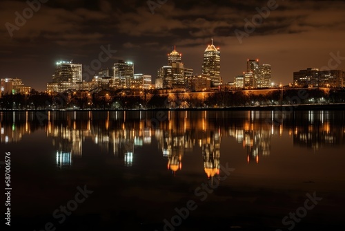 © Magaritas, Fototapeta premium city skyline at night Generative Ai