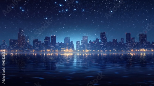 Fototapeta premium city skyline at night, illuminated by soft, peaceful lights
