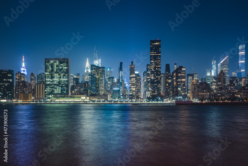 Fototapeta premium city skyline at night in new york with skyscrapers and buildings