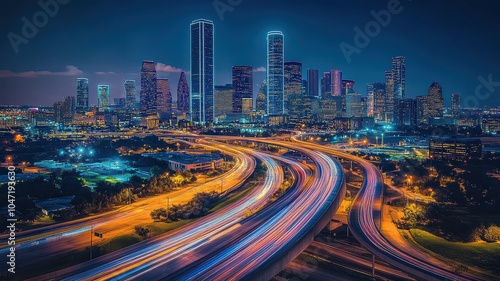 Fototapeta premium City skyline at night with light trails
