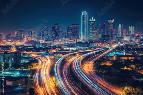 Fototapeta premium City skyline at night with light trails