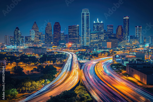 Fototapeta premium City skyline at night with light trails