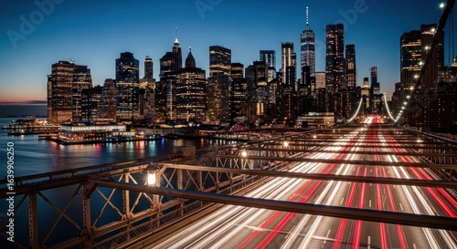 Obraz premium City skyline at night with long exposure bridge traffic lights