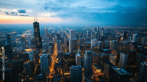 © Postmodern Studio, Obraz premium City skyline at night with the lights on
