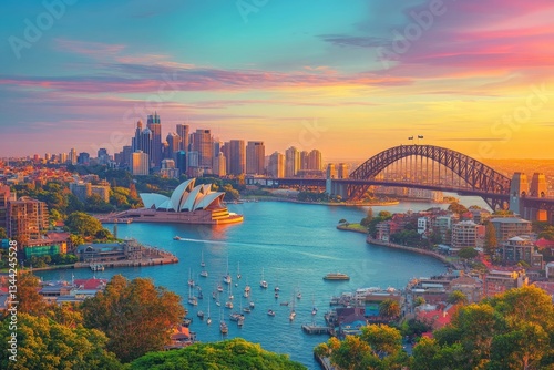 © artwiyanastudio, Naklejka premium City skyline at sunrise