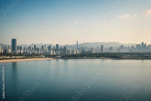 Naklejka premium city skyline at sunset