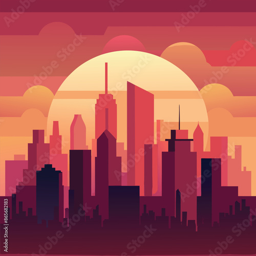 © Ahmer Shaikh, Fototapeta premium city skyline at sunset