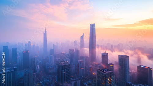 © 芷仪 黄, Fototapeta premium city skyline at sunset