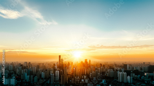 Fototapeta premium City Skyline at Sunset: A breathtaking aerial view of a sprawling city...