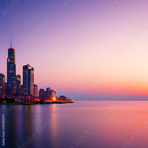 © 폴리리 폴리, Fototapeta premium city skyline at sunset. Generative AI