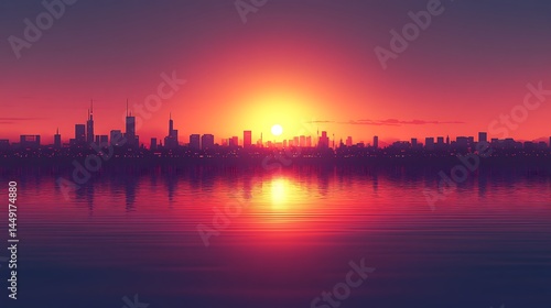 © Diki prayoga, Fototapeta premium City skyline at sunset on water