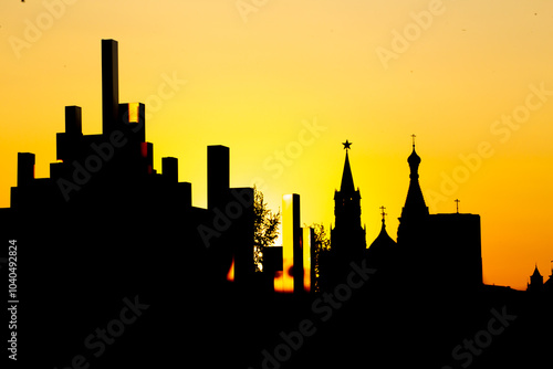 © Yuriy, Obraz premium city skyline at sunset onn the Kremlin's Moscow