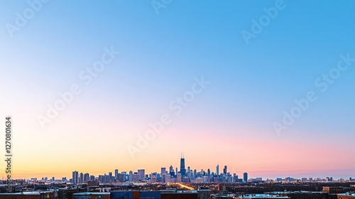 Fototapeta premium City Skyline at Sunset, Urban Landscape with Pink and Blue Sky