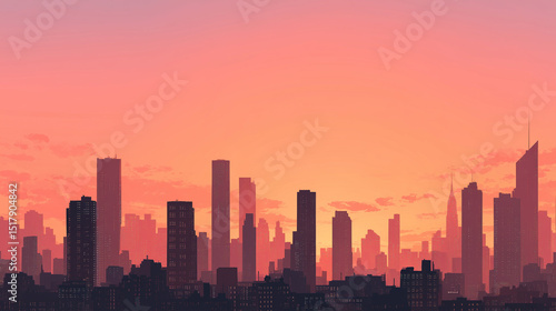 © Usaginikov, Fototapeta premium City Skyline at Sunset with Silhouetted Buildings