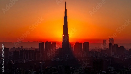 © 徹 作花, Fototapeta premium City Skyline at Sunset with Tower
