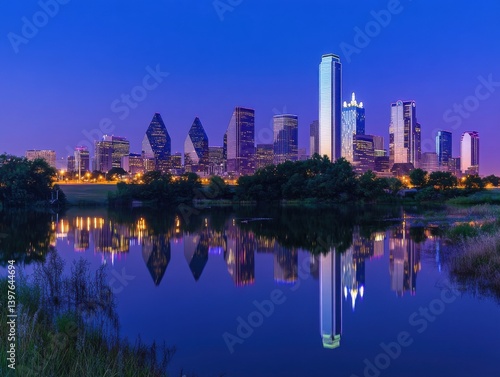 © Hafiz, Naklejka premium City skyline at twilight with panoramic view and space for text