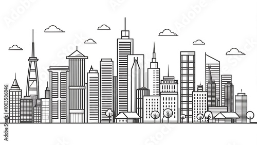 © MDABUAL, Fototapeta premium City skyline drawing trend