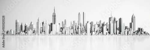 Naklejka premium City skyline, foreground ground, white model, 3d, high quality, HD image