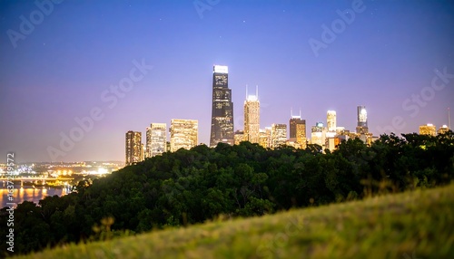 © goodskin, Fototapeta premium City skyline glows at dusk