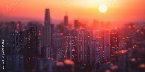© RizArt, Fototapeta premium City Skyline Illuminated by Sunset Glow