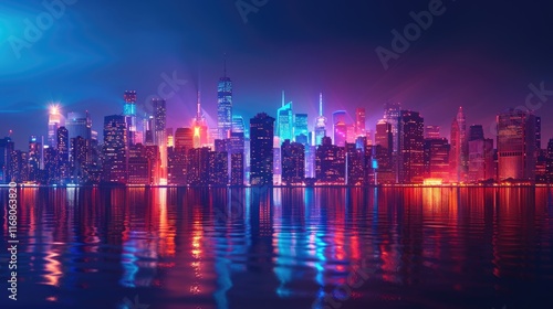 Fototapeta premium City skyline illuminated by vibrant neon lights