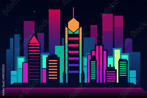 Fototapeta premium city-skyline-in-neon-lights-and-vivid-colors
