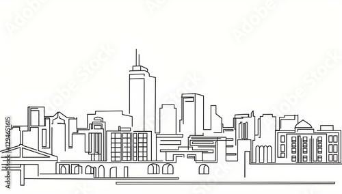 © Peindre, Naklejka premium 都市のスカイラインのラインアート | City Skyline Line Art