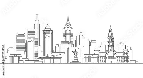 Naklejka premium City Skyline Outlines Line Art Illustration Architecture Design