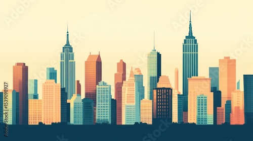 © abi, Fototapeta premium City skyline, pastel hues, flat style