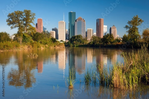 © Uang, Fototapeta premium City Skyline Reflected in Lake Water