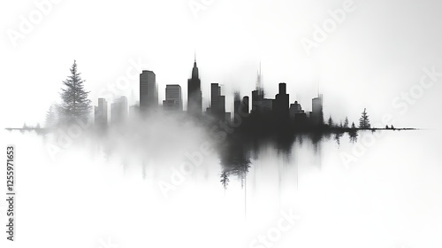 © makcik, Fototapeta premium City Skyline Reflected In Misty Water