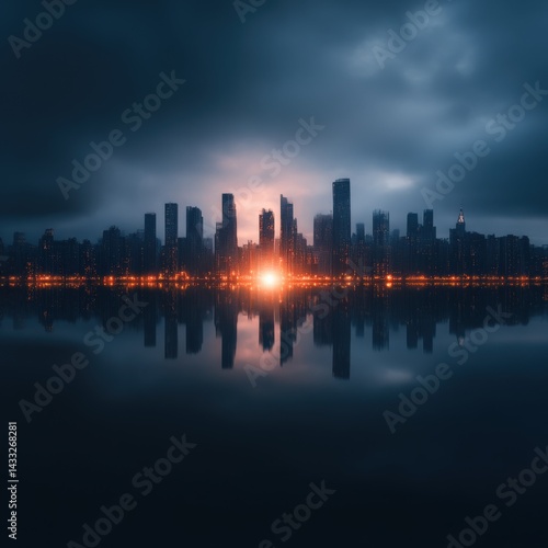 © Mandeep, Fototapeta premium City skyline reflecting at night