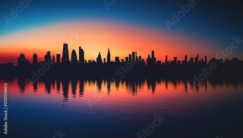 © sangkribo, Fototapeta premium City skyline reflection at sunrise