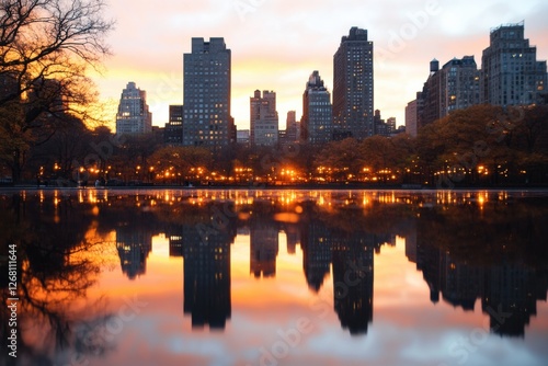 © Mandeep, Obraz premium City Skyline Reflection at Sunset