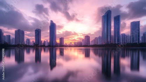 © YAK XL, Fototapeta premium City Skyline Reflections at Sunset