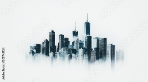 Naklejka premium City skyline shrouded in mist