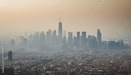 Fototapeta premium City skyline shrouded in smog with poor air quality, global pollution, environmental pollution, climate change