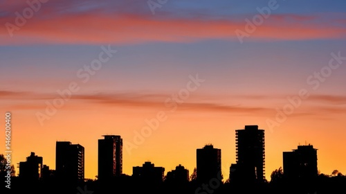 Fototapeta premium City skyline silhouette against a warm dusk sky, urban simplicity meets...