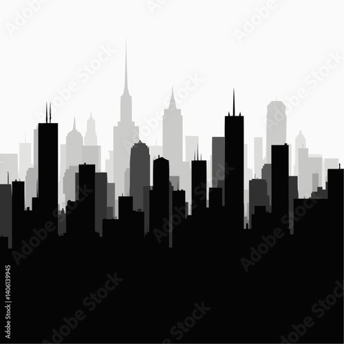 © Goldfd, Naklejka premium City Skyline Silhouette at Dawn
